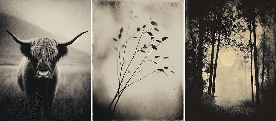 Des œuvres photographiques murales intemporelles sont créées dans mon studio, inspirées par les techniques photographiques historiques et la nature tranquille de la lumière naturelle.