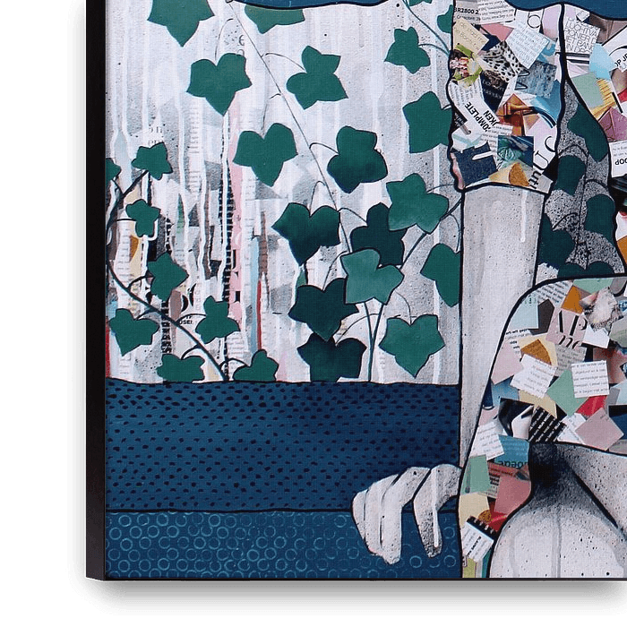 Techniques mixtes sur toile : peinture acrylique, aérosol et papier.
