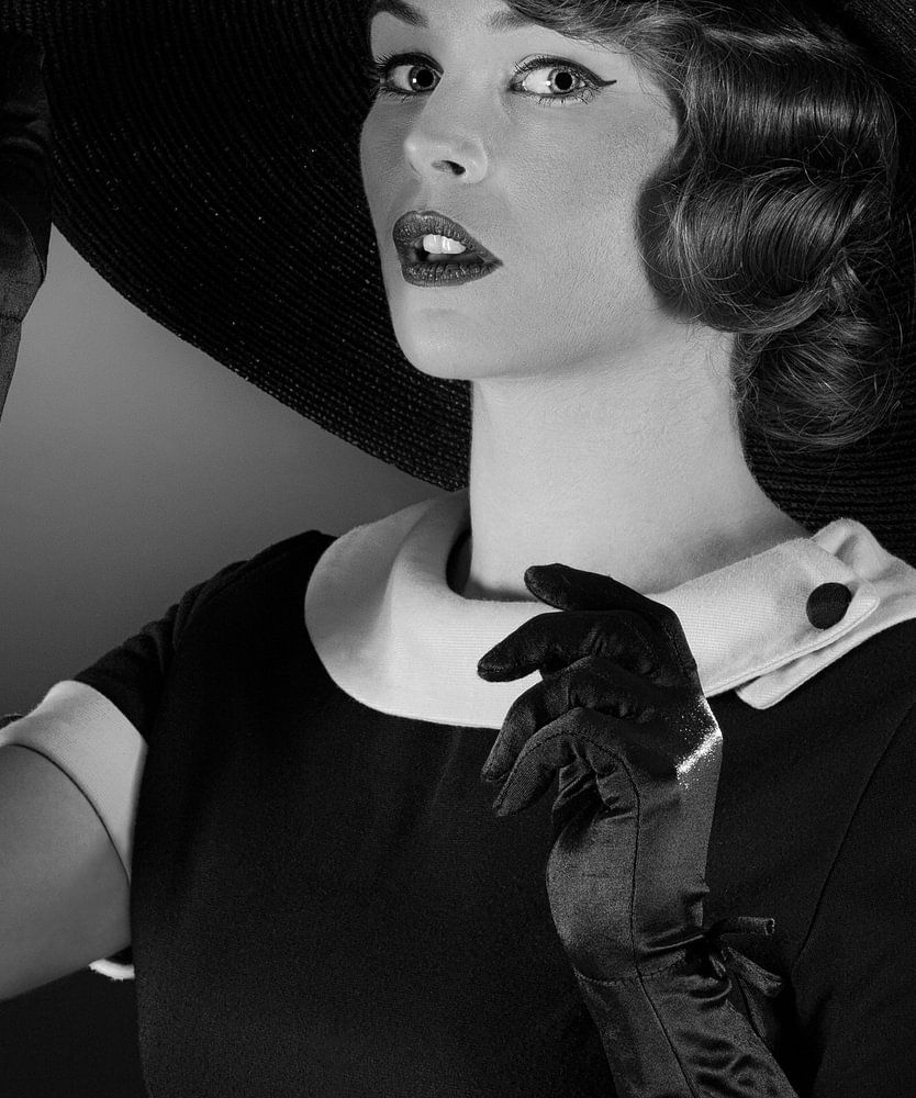 Achetez cette œuvre d'art en noir et blanc 50' beauté & ; élégance française par Manu Allicotsur toile, aluminium, ArtFrame ou photographie (encadrée), impression d'art en haute qualité et tout format.