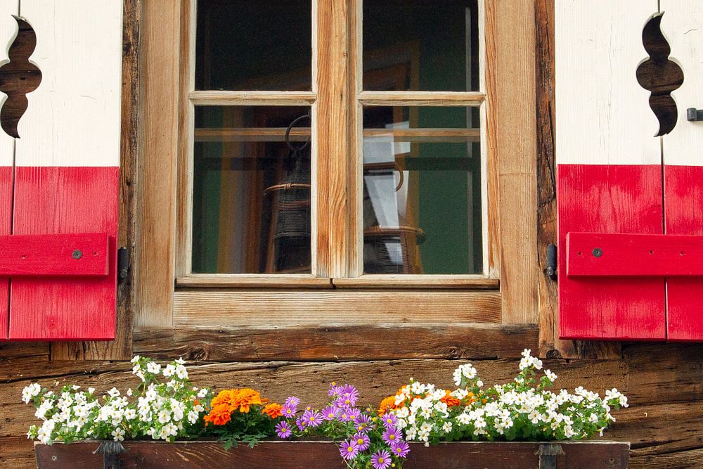 Après le trajet d'une beauté époustouflante jusqu'au village de Heiligenblut en Carinthie, en Autriche, vous pouvez commander une délicieuse glace sur une terrasse tout en profitant de la vue sur le Grossglockner. Le village a conservé une atmosphère conviviale et d'authentiques chalets en bois. Cette fenêtre avec des volets aux couleurs du drapeau autrichien est un véritable accroche-regard.
