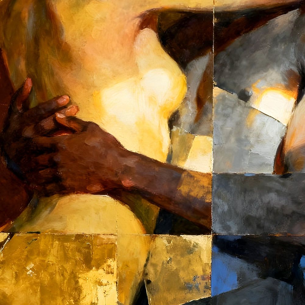 A Shared Silence est une œuvre d'art figurative abstraite et chaleureuse qui explore le lien humain, l'intimité et la sérénité sans recourir à des détails explicites ni à une narration littérale. La composition représente deux figures humaines dans une étreinte silencieuse, suggérant la proximité, la confiance et une présence partagée plutôt qu'un récit ou une action.