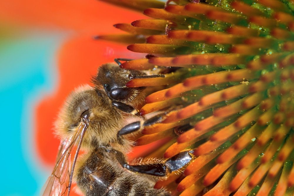 Achetez cette œuvre d'art florale Abeille à miel sur une fleur d'héliotrope par ManfredFotos sur toile, aluminium, ArtFrame ou photographie (encadrée), impression d'art en haute qualité et tout format.