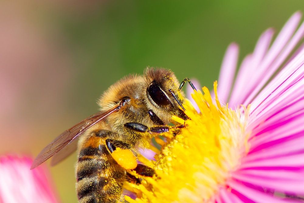 Achetez cette œuvre d'art florale Abeille sur une fleur d'Aster par ManfredFotos sur toile, aluminium, ArtFrame ou photographie (encadrée), impression d'art en haute qualité et tout format.