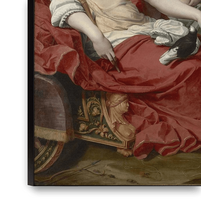 La composition prend la forme d'une scène mythologique, avec un caractère allégorique évident. Les trois divinités peuvent être identifiées par leurs attributs : à droite, on trouve Cérès (déesse des récoltes, de l'agriculture et des pouvoirs régénérateurs de la nature) portant une couronne d'épis, appuyée sur une grande corne…