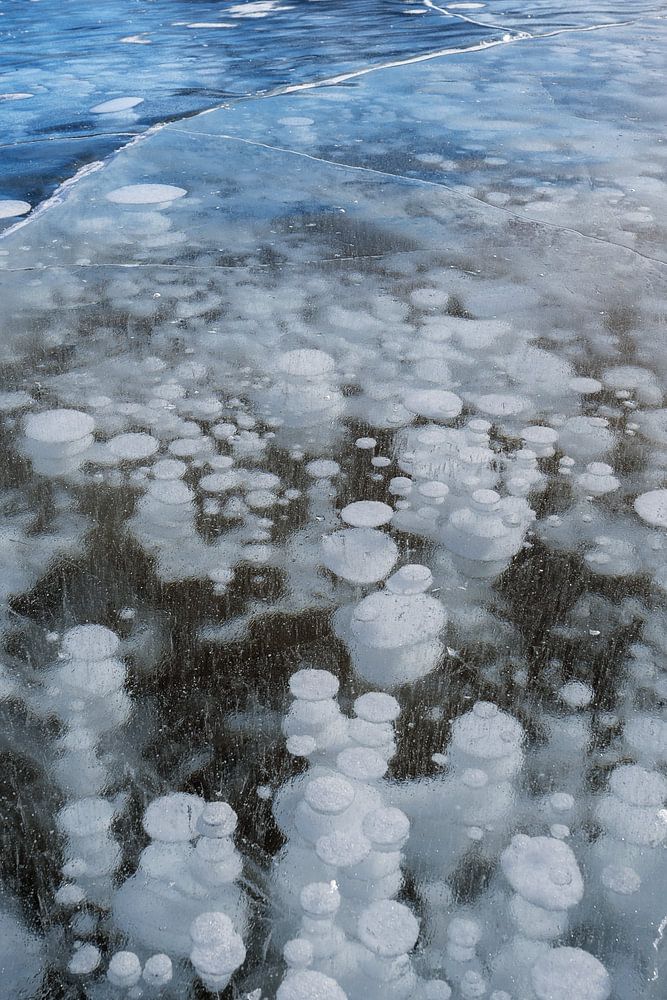 Abraham lake heeft een oppervlakte van meer dan 53km2. Naast zijn enorme oppervlakte zit er in de winter methaan gas in het ijs vast wat vrij komt vanuit de bodem waardoor je een bijzonder schouwspel te zien krijgt.