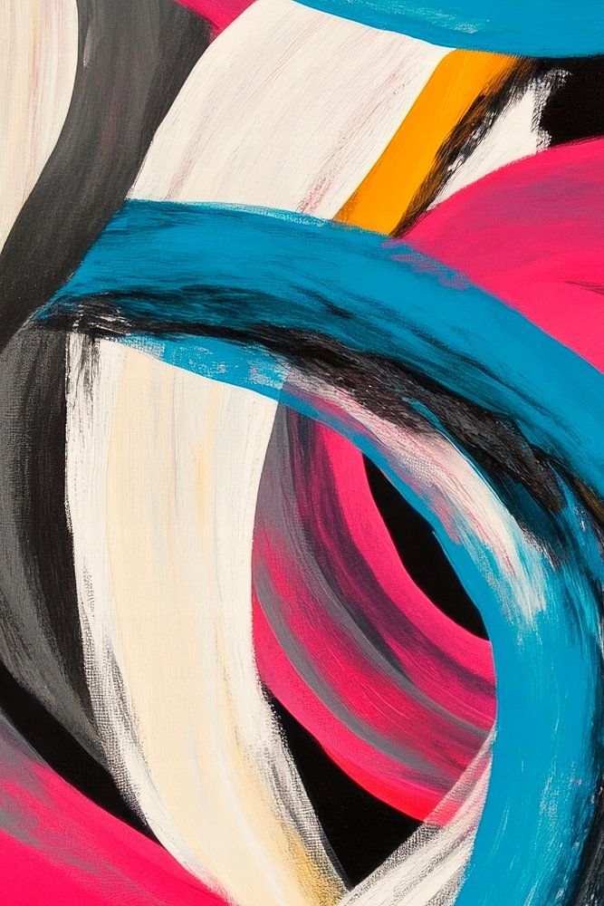 Dans des tourbillons dynamiques de couleurs vives se déploie une composition fascinante qui interpelle l'œil. Les contrastes puissants entre le rose, le bleu et le jaune confèrent au tableau un rayonnement plein d'énergie. Idéal pour un salon moderne, il apporte du dynamisme et de la vivacité à chaque pièce et invite à l'échange créatif.