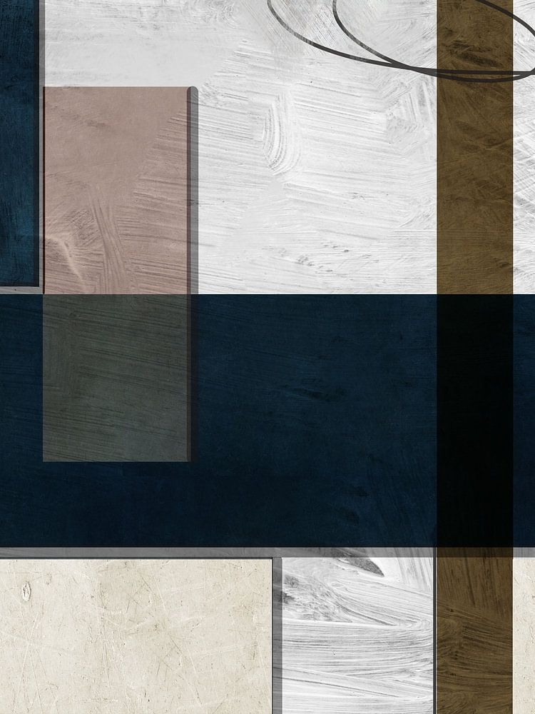 Adéquat est une œuvre d'art abstrait moderne de Roberto Moro avec des formes géométriques, une texture forte et des tons bleus et gris doux. Des lignes fines traversent la composition et égayent l'œuvre.