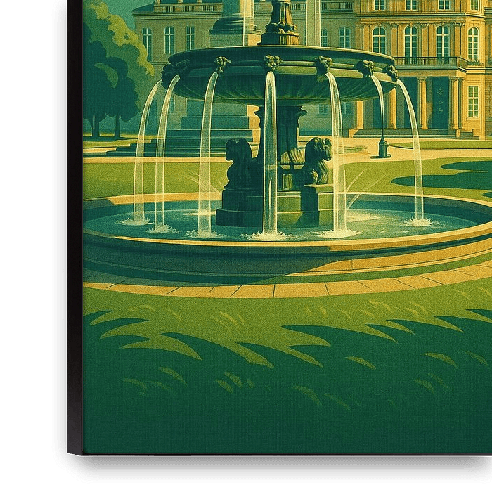 Achetez cette œuvre d'art de paysage Affiche de voyage vintage de Stuttgart - Schlossplatz Fountain View par Travel Shop sur toile, aluminium, ArtFrame ou photographie (encadrée), impression d'art en haute qualité et tout format.