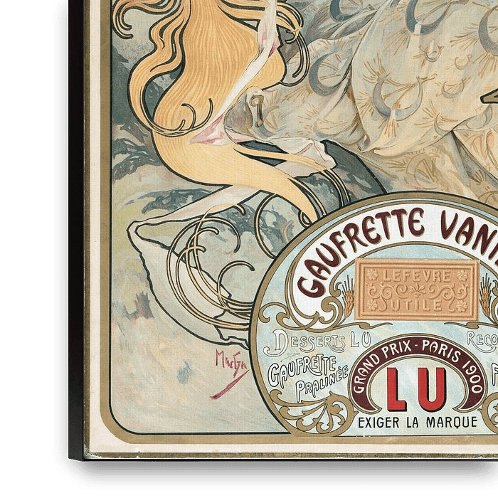 la ligne ondulée et stylisée des cheveux et de l'entourage sont caractéristiques de l'Art Nouveau. Cette publicité a contribué à créer une image artistique pour la marque.