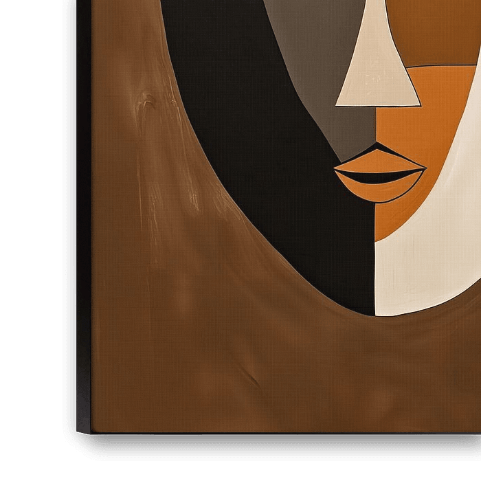Une peinture minimaliste, cubiste et abstraite représentant l'art africain Les couleurs utilisées dans la peinture peuvent être discrètes et terreuses, avec un accent sur les tons naturels tels que l'ocre, la terre de Sienne et la terre d'ombre brûlée.