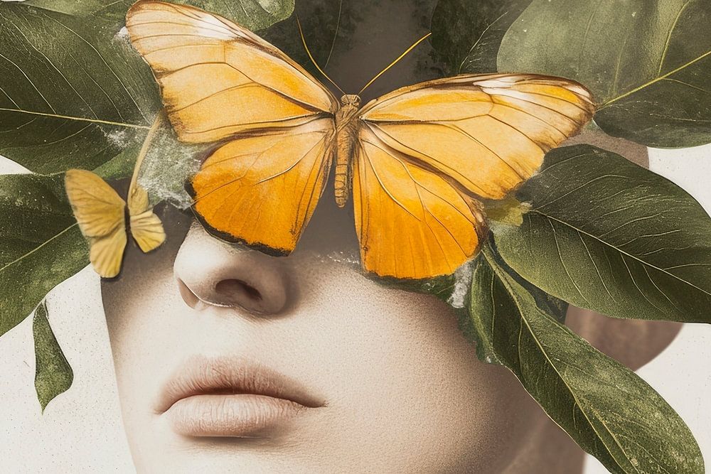 Une interaction harmonieuse entre des papillons vivants et une verdure luxuriante se déploie et transmet un sentiment de légèreté et de liberté. La combinaison de la nature et de la figure humaine symbolise la créativité et la capacité de changement. Cette œuvre artistique apporte un élan de fraîcheur dans le salon et invite à la rêverie et à l'inspiration.