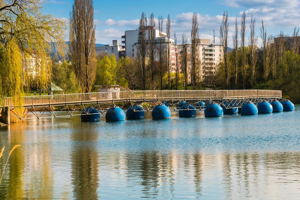 Allemagne, Freiburg im Breisgau city park seepark lake water swimming bridge surrounded by gree natu par adventure-photos