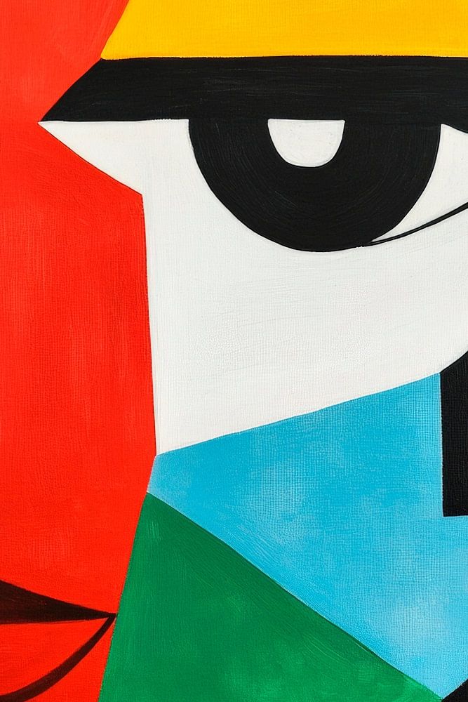 La géométrie colorée rencontre l'humanité abstraite ! La composition marquante aux tons vifs de rouge, de bleu et de jaune encadre un visage mystérieux dont le regard pénétrant incite à la réflexion. Cette décoration murale créative convient parfaitement à un salon pour favoriser les conversations stimulantes et égayer l'ambiance.