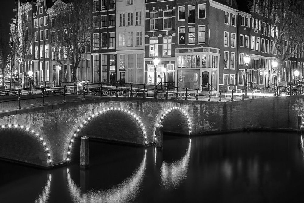 Amsterdam le soir en noir et blanc - Keizersgracht