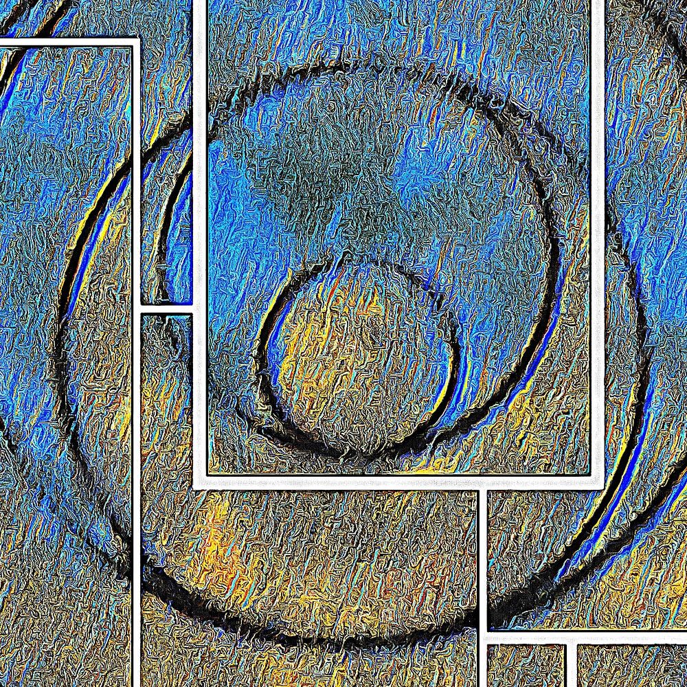 Une image représentant un ange qui se tient sur la terre et touche le ciel avec de belles nuances douces de bleu et de sable, que j'ai appelée Earth And Sky Angel. Il s'agit d'un dessin délibérément doux, suggérant l'émanation d'énergie, basé sur des formes géométriques qui suggèrent l'image d'un ange avec des ailes que vous voyez d'en haut.