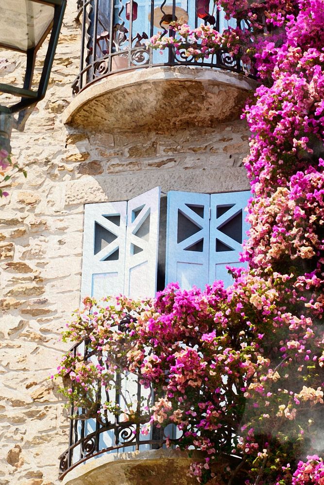Aquarelle d'une journée ensoleillée dans la charmante ville de Bormes les Mimosas, mettant en valeur ses belles maisons aux façades fleuries.