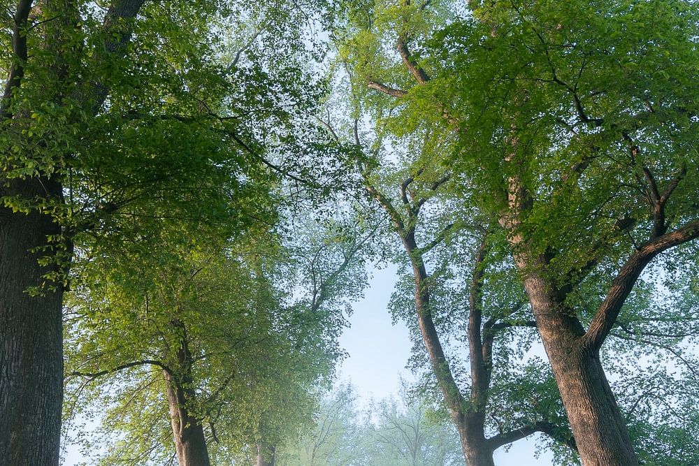 Le sinueux Zwartendijk près de Kampen avec ses vieux arbres magnifiques. La brume dense au-dessus des prairies créait un bel effet de tunnel.