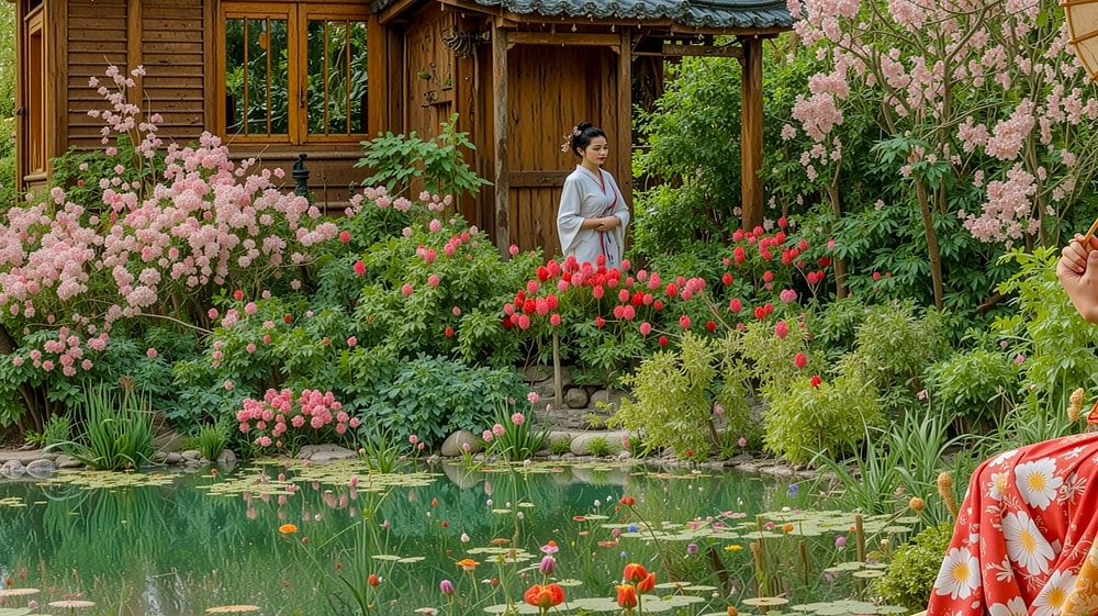 Achetez cette œuvre d'art japonaise Art japonais Geisha dans un jardin par Egon Zitter sur toile, aluminium, ArtFrame ou photographie (encadrée), impression d'art en haute qualité et tout format.