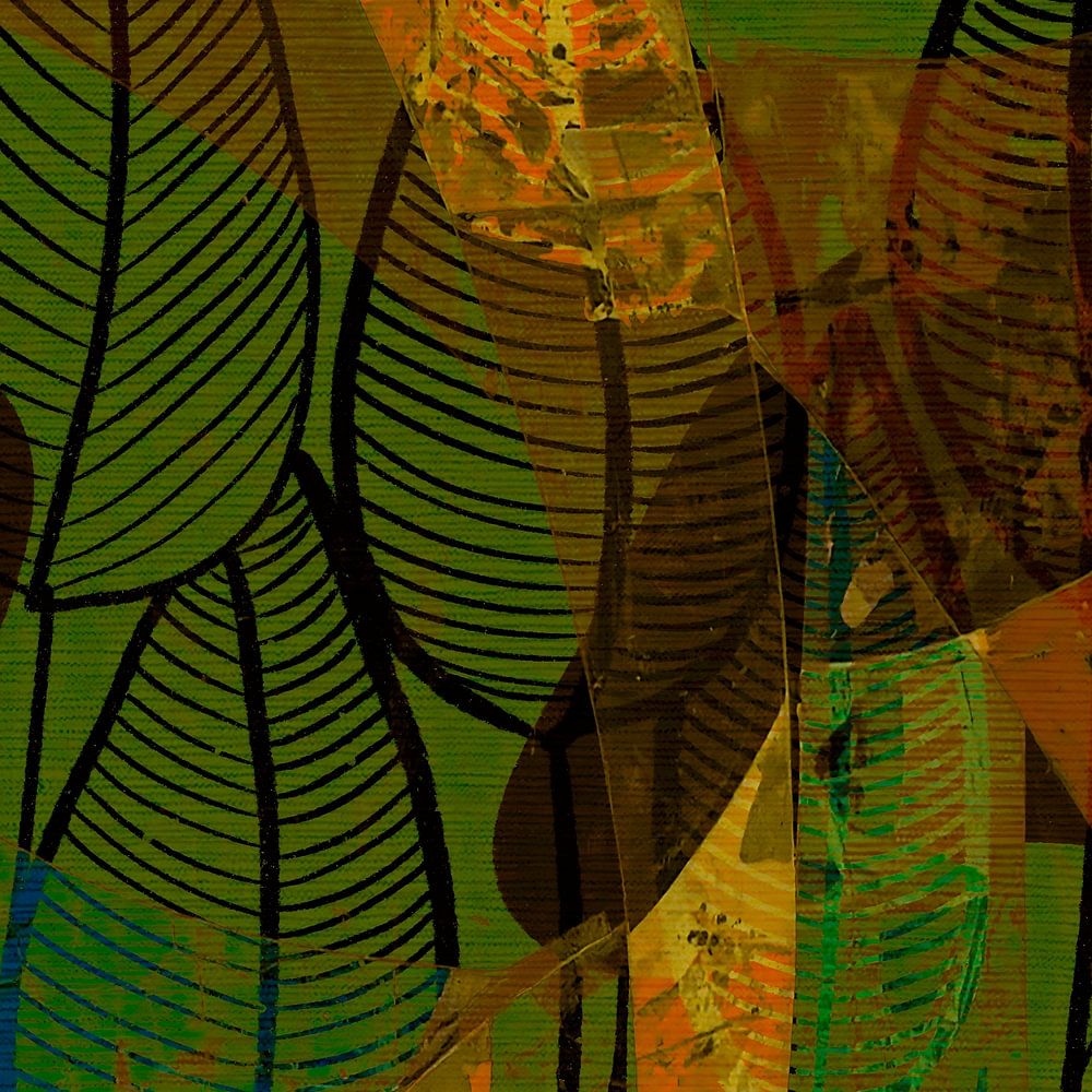 Cette œuvre d'art mixte se compose de plusieurs couches de textures et d'images de plantes, de feuilles et/ou d'herbes combinées les unes aux autres pour créer une œuvre absolument exclusive.