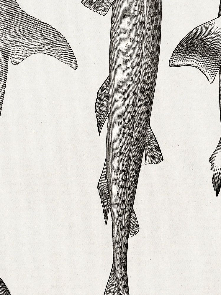 Cette gravure ancienne représente quatre requins différents. Il s'agit de l'aiguillat, de l'aiguillat commun et du requin du Groenland.