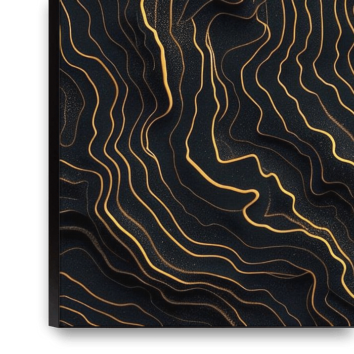Un cercle noir profond est visible au centre, entouré d'une lueur dorée, presque électrique, qui rayonne et se transforme en lignes superposées. Ces lignes suivent un schéma fluide qui rappelle les cartes…
