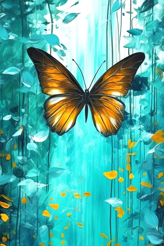 Les couleurs vives des papillons contrastent magnifiquement avec l'environnement, créant un véritable festin visuel. La composition respire la légèreté, la grâce et la danse infinie de la nature.