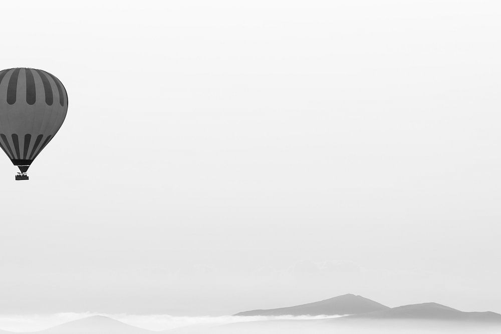 A propos de "Ballon à air chaud dans la brume de l'aube en noir et blanc"