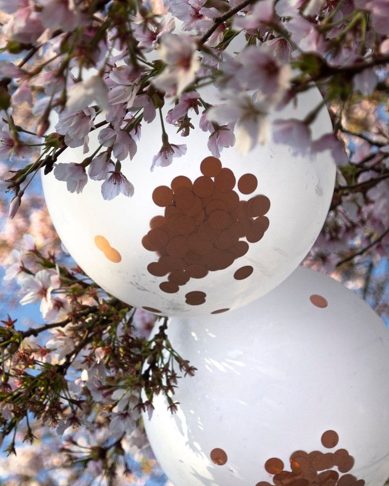Célébration du printemps in optima forma ! La fleur est toujours belle, mais avec ces ballons avec confettis, c'est une vraie fête.