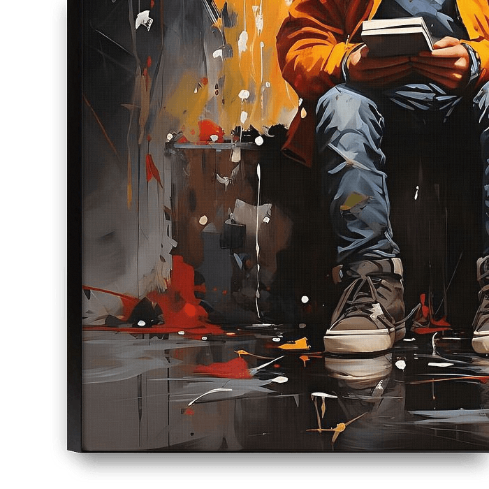 Banksy meets Pollock art&quot ; est une fusion intrigante de deux styles d'art magistraux. Le résultat est une œuvre d'art ludique et dynamique, fusionnant les éléments distinctifs de l'art de rue de Banksy avec les gouttes de peinture expressives et le chaos abstrait de l'action painting de Pollock. La combinaison de messages…