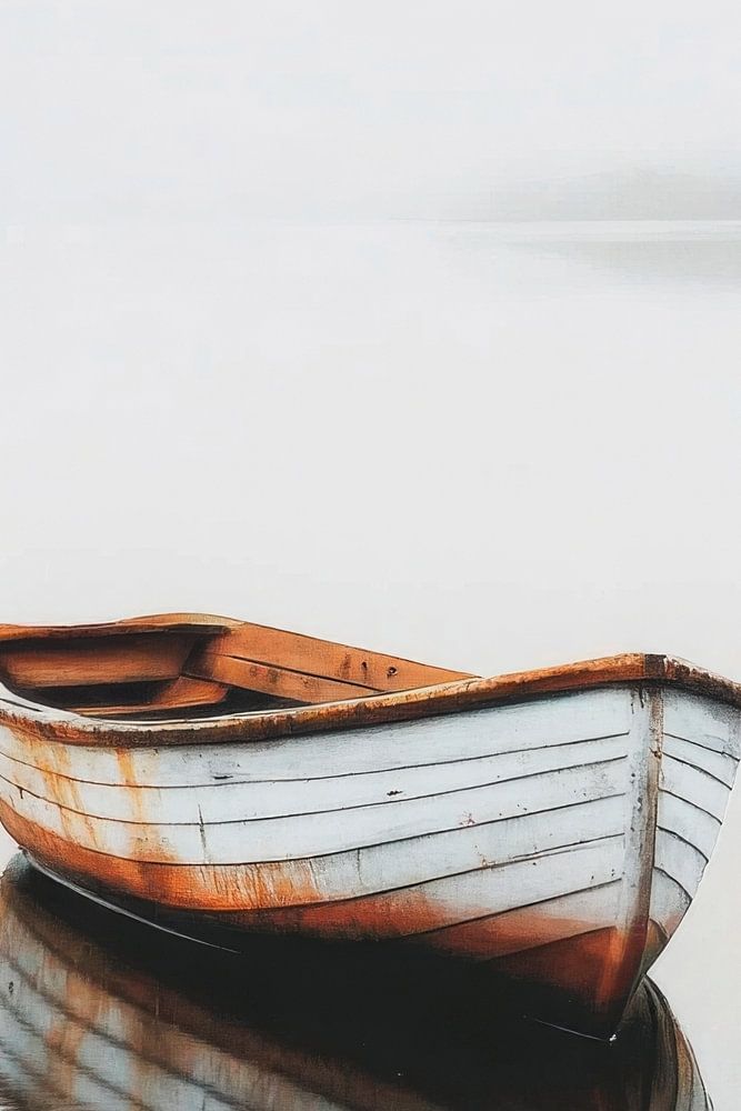 Un bateau solitaire glisse doucement sur la surface lisse comme un miroir, comme s'il était transporté dans un décor de rêve. Les douces vagues encadrent la surface rustique du bois, dont les lignes disparaissent doucement dans la brume. Un moment de silence où le temps et l'espace se confondent et où la lumière danse de manière ludique avec le reflet scintillant.