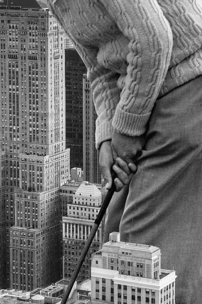 Un golfeur dans la grande ville.