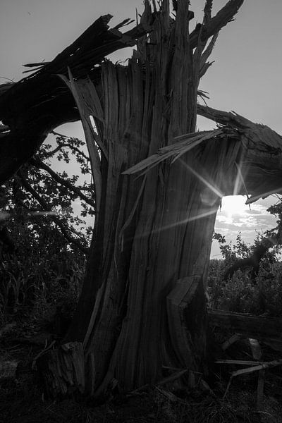Eiche nach Blitzeinschlag s/w