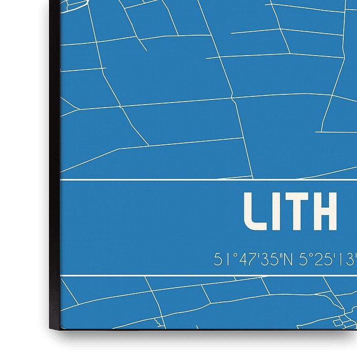 Plan de la carte / plan de la ville néerlandaise de Lith, située dans la commune d'Oss, province du Brabant septentrional. La carte comprend toutes les routes publiques et les coordonnées du centre de Lith.