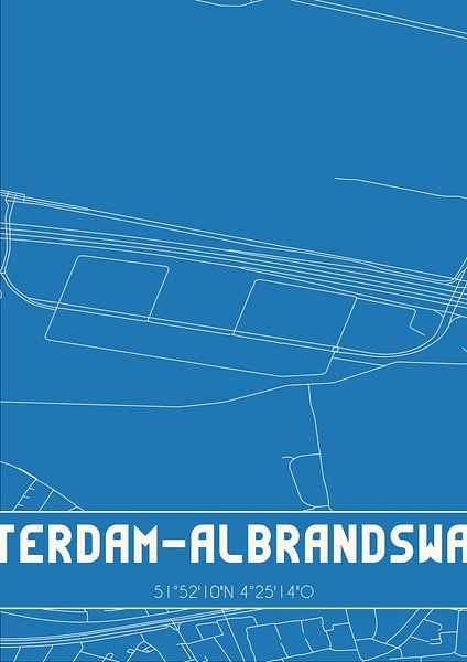 Plan de la carte / plan de la ville néerlandaise de Rotterdam-Albrandswaard, située dans la municipalité d'Albrandswaard, province de Hollande méridionale. La carte contient toutes les routes publiques et les coordonnées du centre de Rotterdam-Albrandswaard.