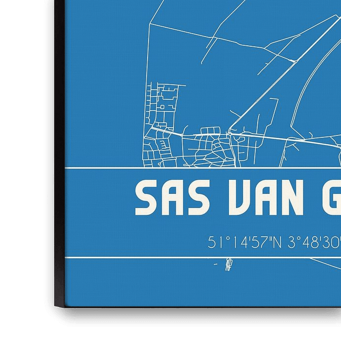 Plan de la carte / plan de la ville néerlandaise de Sas van Gent, située dans la municipalité de Terneuzen, province de Zélande. La carte comprend toutes les routes publiques et les coordonnées du centre de Sas van Gent.