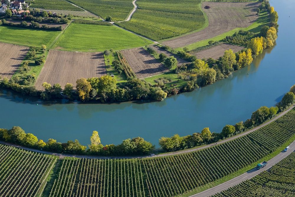 Vue aérienne de la boucle du Neckar près de Mundelsheim