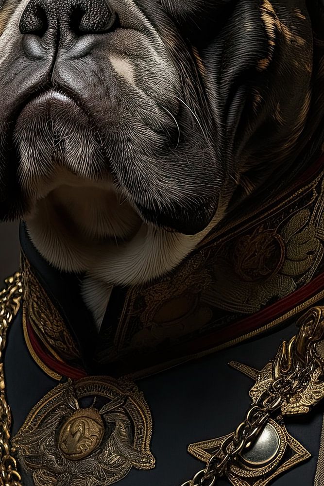 A propos de "Bouledogue en tenue militaire à l'ancienne"