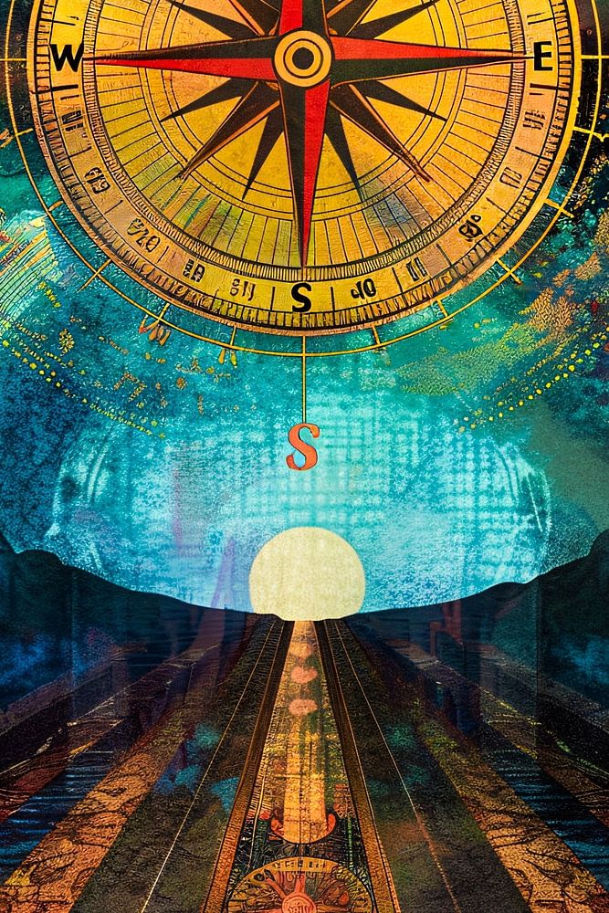 Cette œuvre d'art saisissante montre une belle combinaison d'une boussole pointant vers un horizon lointain. Le dessin combine des éléments surréalistes avec une combinaison de couleurs vibrantes et dynamiques de bleu, d'or et d'orange. Cette œuvre est parfaite pour tous ceux qui aiment l'art avec une touche philosophique ou aventureuse. L'œuvre dégage un sentiment de direction, de but et de découverte, ce qui la rend idéale pour les intérieurs modernes. Placez-la dans un couloir ou une chambre pour un effet visuel percutant. Le design met l'accent non seulement sur l'esthétique mais aussi sur le symbolisme, ce qui en fait une pièce intemporelle.