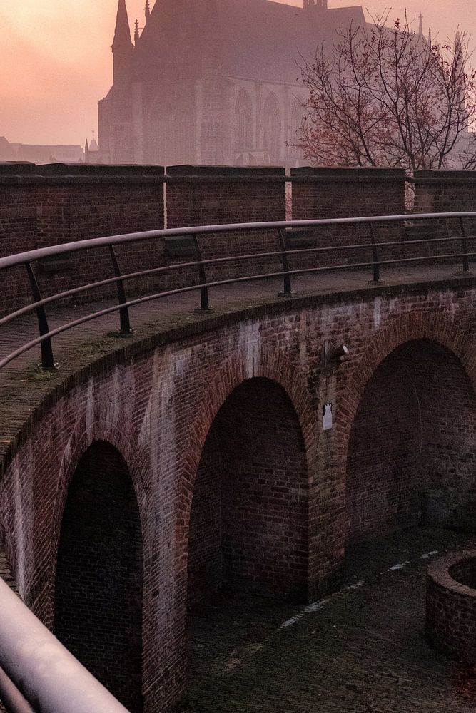Un matin d'hiver brumeux dans le centre de Leyde. Pris au château avec la Hooglandse Kerk en arrière-plan. Le soleil vient juste de traverser le brouillard, ce qui donne au tableau une atmosphère mystérieuse.
