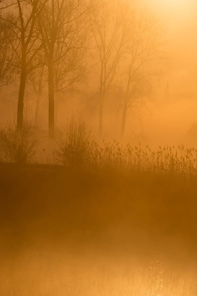 Achetez cette œuvre d'art de paysage Brouillard entrant par un matin ensoleillé et glacial sur la Dendre. par Marcel Derweduwen sur toile, aluminium, ArtFrame ou photographie (encadrée), impression d'art en haute qualité et tout format.