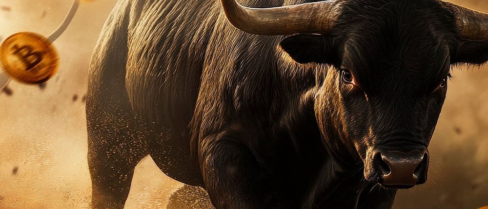 Un puissant taureau fonce à travers un nuage doré de pièces et de symboles de la crypto-monnaie, symbolisant la force et le dynamisme financier. Ce décor explosif apporte de l'énergie et une atmosphère de renouveau dans chaque bureau, parfait pour les esprits créatifs et les passionnés de finance qui souhaitent s'inspirer de défis audacieux.