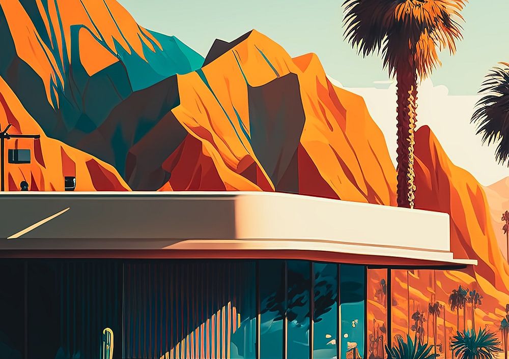 Entrez dans le monde enchanteur d'un bungalow des années 1950 situé dans le désert époustouflant de l'Arizona. Entouré de palmiers majestueux et d'agaves impressionnants, ce bungalow est une ode au style rétro et à l'architecture géométrique vintage si caractéristiques de l'époque. Le bungalow dégage un charme unique avec ses lignes épurées et ses formes angulaires caractéristiques de l'architecture géométrique de l'époque. Savourez un délicieux cocktail sur la terrasse ensoleillée tout en admirant les magnifiques paysages désertiques. Cette expérience unique vous fera voyager dans le temps, à une époque où le style et la classe étaient inégalés.