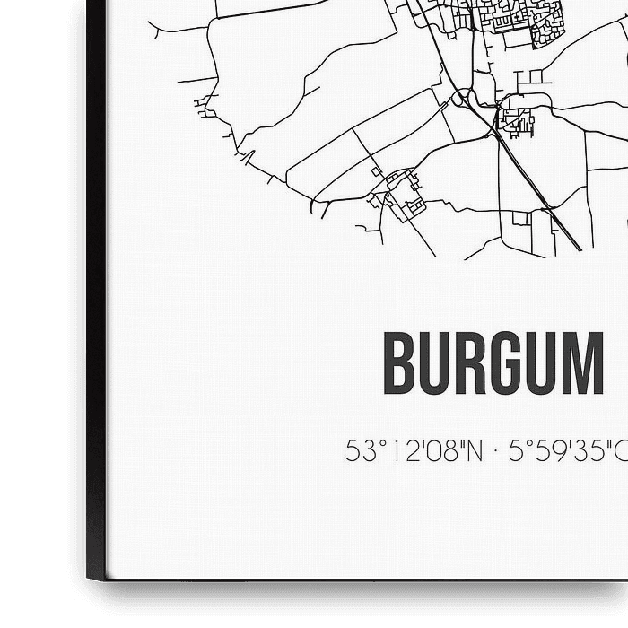 Achetez cette œuvre d'art abstraite Burgum (Fryslan) | Carte | Noir et blanc par Affiches de lieux sur toile, aluminium, ArtFrame ou photographie (encadrée), impression d'art en haute qualité et tout format.