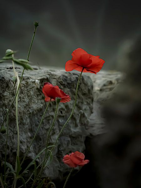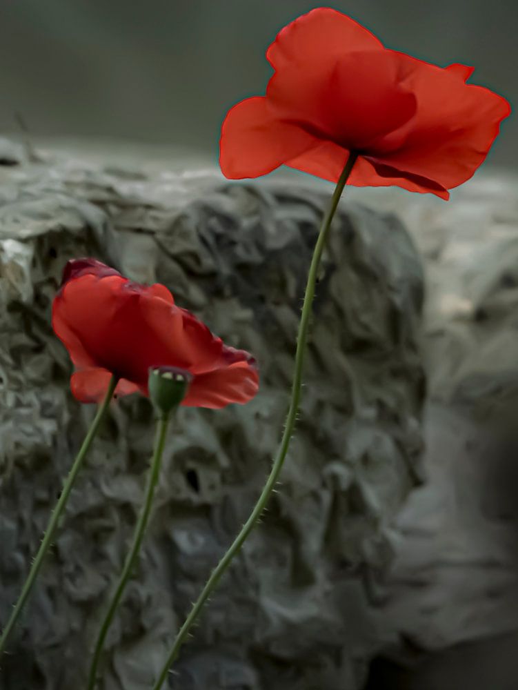 J'étais assise dans un magnifique jardin en France, en train de regarder autour de moi, et bien sûr, le rouge a de nouveau attiré mon attention. C'est ma couleur préférée. Le contraste avec les pierres à l'arrière-plan a attiré mon attention. Les coquelicots rouges ressortent ainsi magnifiquement. Personnellement, ces fleurs me rendent…