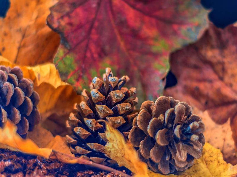Acheter ce art numérique CONCEPT AUTOMNE : DES POMMES DE PIN EN AUTOMNE par Photoart-Naegele sur toile, aluminium, ArtFrame ou photographie (encadrée), impression d'art en haute définition et tout type de format.