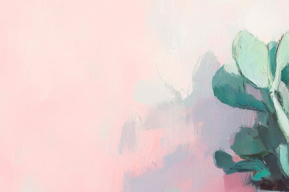 Dans de doux tons pastel, une scène harmonieuse se déploie, dans laquelle une plante vivante brille dans son simple pot blanc. Les délicates feuilles ovales semblent danser dans la douce lumière, tandis que le mur rose pâle en arrière-plan dégage une atmosphère de calme et de sérénité. Un accent naturel dans une pièce minimaliste.