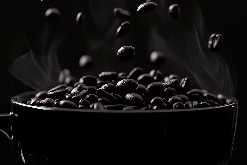 Une touche d'élégance se déploie dans cette scène où des grains de café fumants flottent dans un noir mystérieux. Les douces ondulations de la vapeur confèrent à l'image une aura presque magique. Idéal pour une cuisine ou un café où l'amour du café et de l'art se rencontrent. Plongez dans cette expérience aromatique !