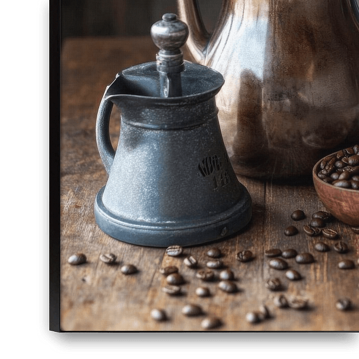 Achetez ce nature morte Cafetière et grains de café par Poster Art Shop sur toile, aluminium, ArtFrame ou photographie (encadrée), impression d'art en haute qualité et tout format.