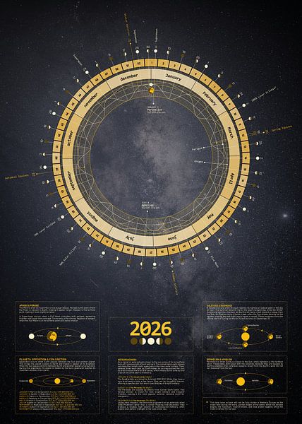 Acheter ce art numérique Calendrier lunaire 2026 par AREND LIMA sur toile, aluminium, ArtFrame ou photographie (encadrée), impression d'art en haute définition et tout type de format.