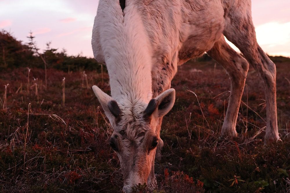 Canadian woodland caribou in sunset light Terre-Neuve Canada